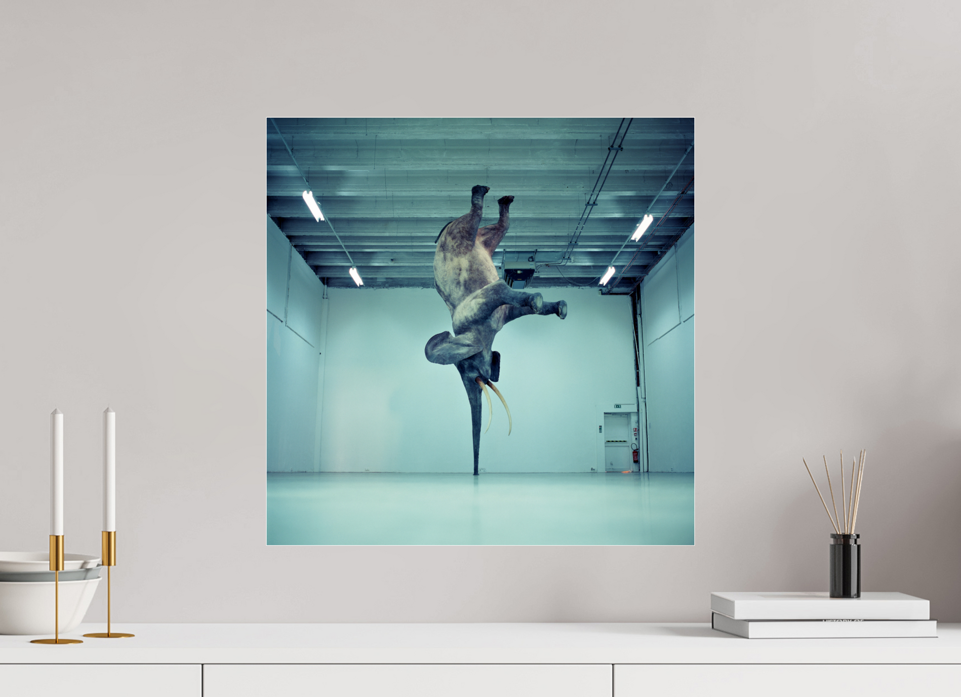 Imagine being an earthbound Elephant, forced to perform and weighed down by Earth's oppressive gravity. Now imagine being able to travel beyond the stratosphere to where the planet's gravitational pull is so weak, that Würsa can sustain its full weight on its trunk. That is the premise behind Daniel Firman's breathtaking sculpture as photographed on analogue film by Ben Vine, almost as to prove that what he was seeing was possible and real. What might appear to be a simple photoshop trick is a triumph of the imagination over our incredulous minds and limitations, creating an image that doesn't seem to belong to this world.